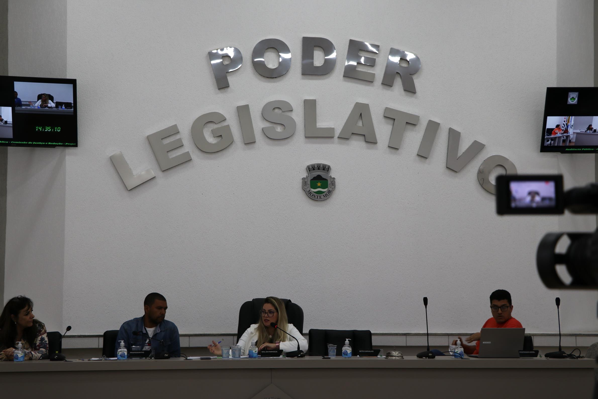 Geral 19.10.2022 01Mesa da audiência pública foi ocupada pela secretária Sandra e pelos vereadores Professor Fio, Wal da Farmácia, Beto Carvalho e Professor AdrielNesta quinta-feira (19), audiência pública da Comissão de Justiça e Redação (CJR) discutiu o Projeto de Lei 131/2022, do Poder Executivo. A propositura prevê a redução da carga horária dos cuidadores de crianças do município. O evento foi transmitido pela internet (reveja).