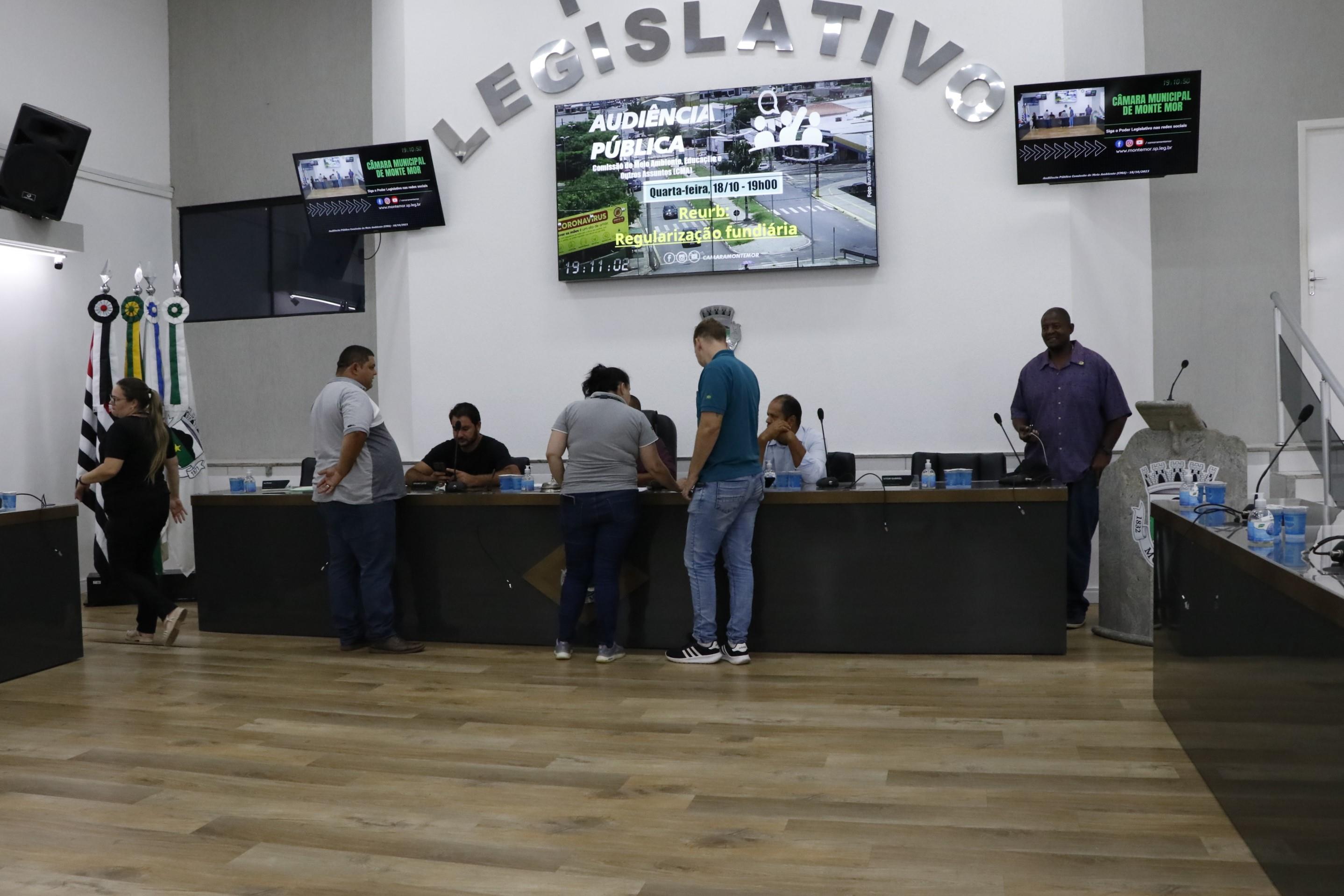 Moradores de vários bairros participaram do evento que debateu o tema regularização fundiária urbana. Na foto acima, alguns deles, com vereadores e demais participantesVereadores e munícipes criticaram a ausência de representantes da prefeitura e da empresa Habita Brasil, na audiência pública que debateu a realização de processos de regularização fundiária urbana (Reurb) no município. O evento, promovido pela Comissão de Meio Ambiente, Educação e Outros Assuntos (CMA), foi realizado na última quarta-feira (18), no Plenário, e durou mais de duas horas. Diversos moradores estiveram presentes - como dos bairros Chácaras Miracatu, Santa Clara do Lago, Recanto das Orquídeas, Jardim Moreira e Parque Residencial São Clemente. O objetivo era esclarecer dúvidas.