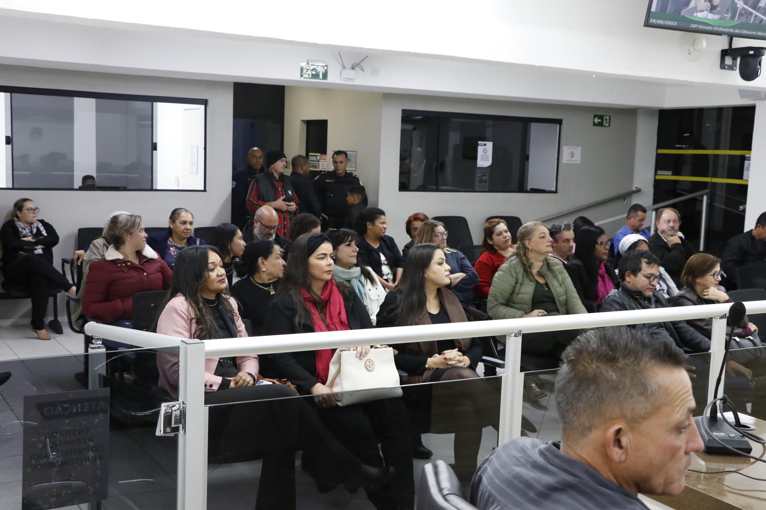 O Plenário da Câmara estava cheio. Além da diretora Andressa de Sousa Rodrigues Mesko, estiveram presentes outros integrantes da comunidade escolar, incluindo professoras; o vice-prefeito Ronaldo Tuim; a secretária de Educação Sandra Bruzon; e a mãe de Leonardo Rodrigues, Maria do Socorro Souza Silva. O jovem, que deu nome à escola, morreu em 2005, aos sete anos.