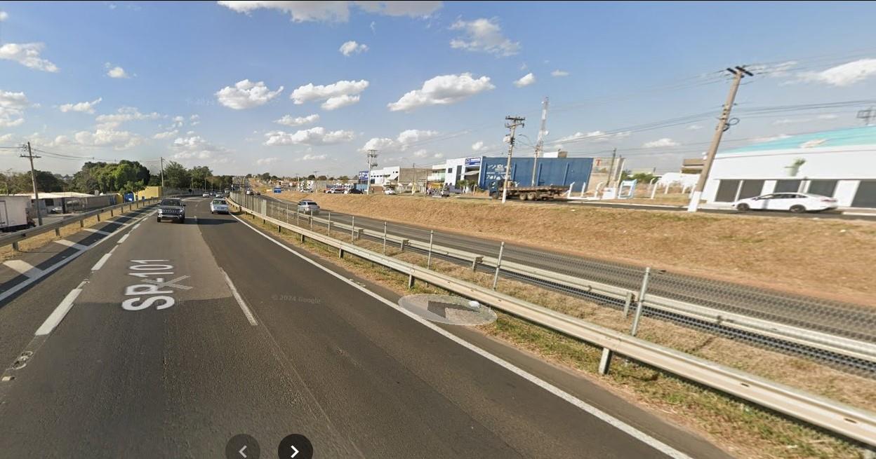 Trecho da SP 101 onde a passarela está sendo construída (Foto: Google Street View)Nesse local, considerado ideal para a construção da estrutura, “já existe um ponto de ônibus que é utilizado para embarque e desembarque de alunos que atravessam a rodovia para chegarem à Escola Estadual Joana de Aguirre Marins Peixoto, no Parque Bela Vista”.