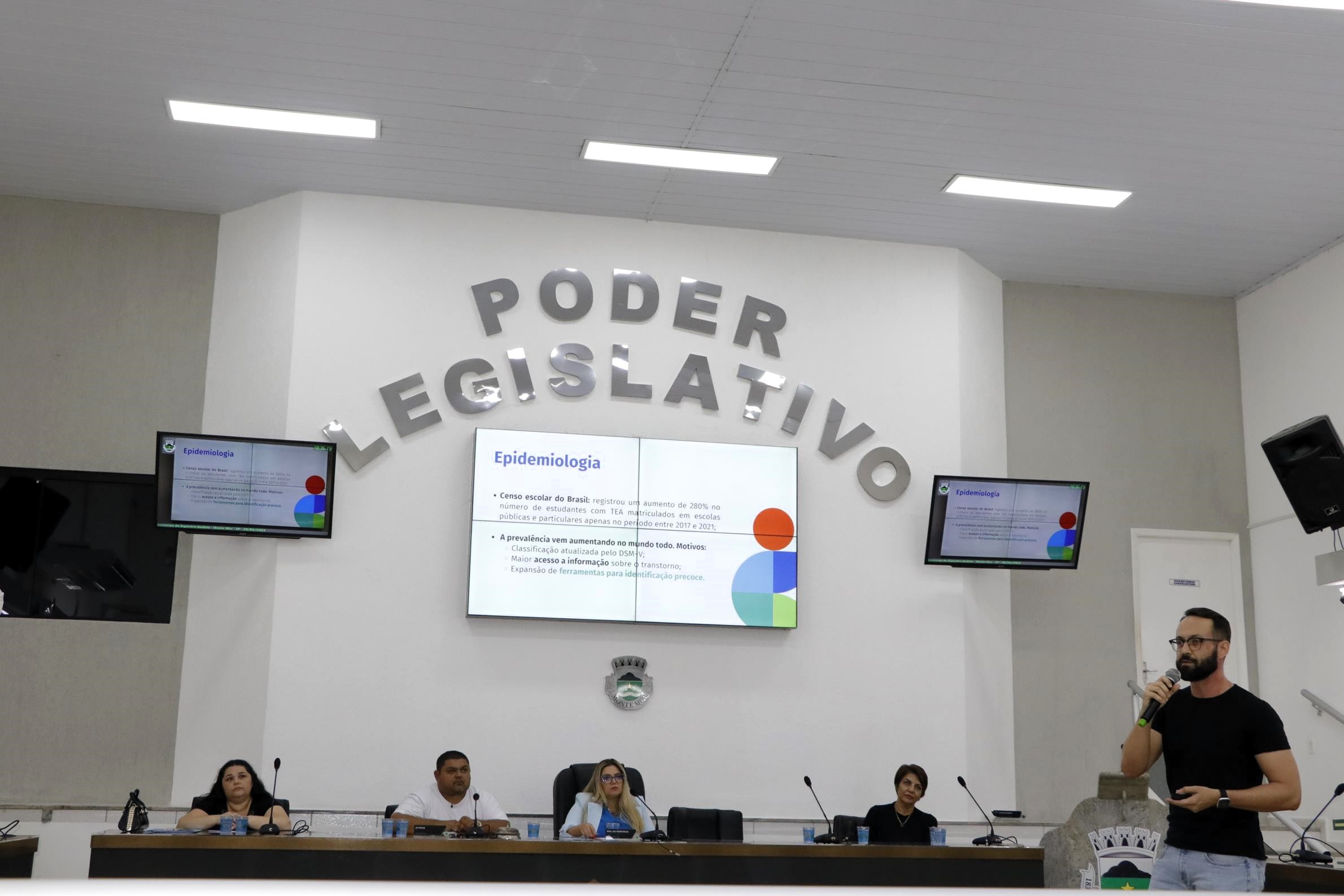 BrunoFernando 30.04.2024O médico Bruno Fernando Oliveira, durante palestra sobre o Transtorno do Espectro Autista, na Câmara: profissional abordou os diversos desafios, como a “sobrecarga das famílias”Na última terça-feira (30/04), a Câmara sediou a 1ª Plenária de Conscientização sobre o Transtorno do Espectro Autista (TEA) - evento organizado pela vereadora Wal da Farmácia (PSB) e que contou com palestra do médico Bruno Fernando Oliveira, sobre o assunto.