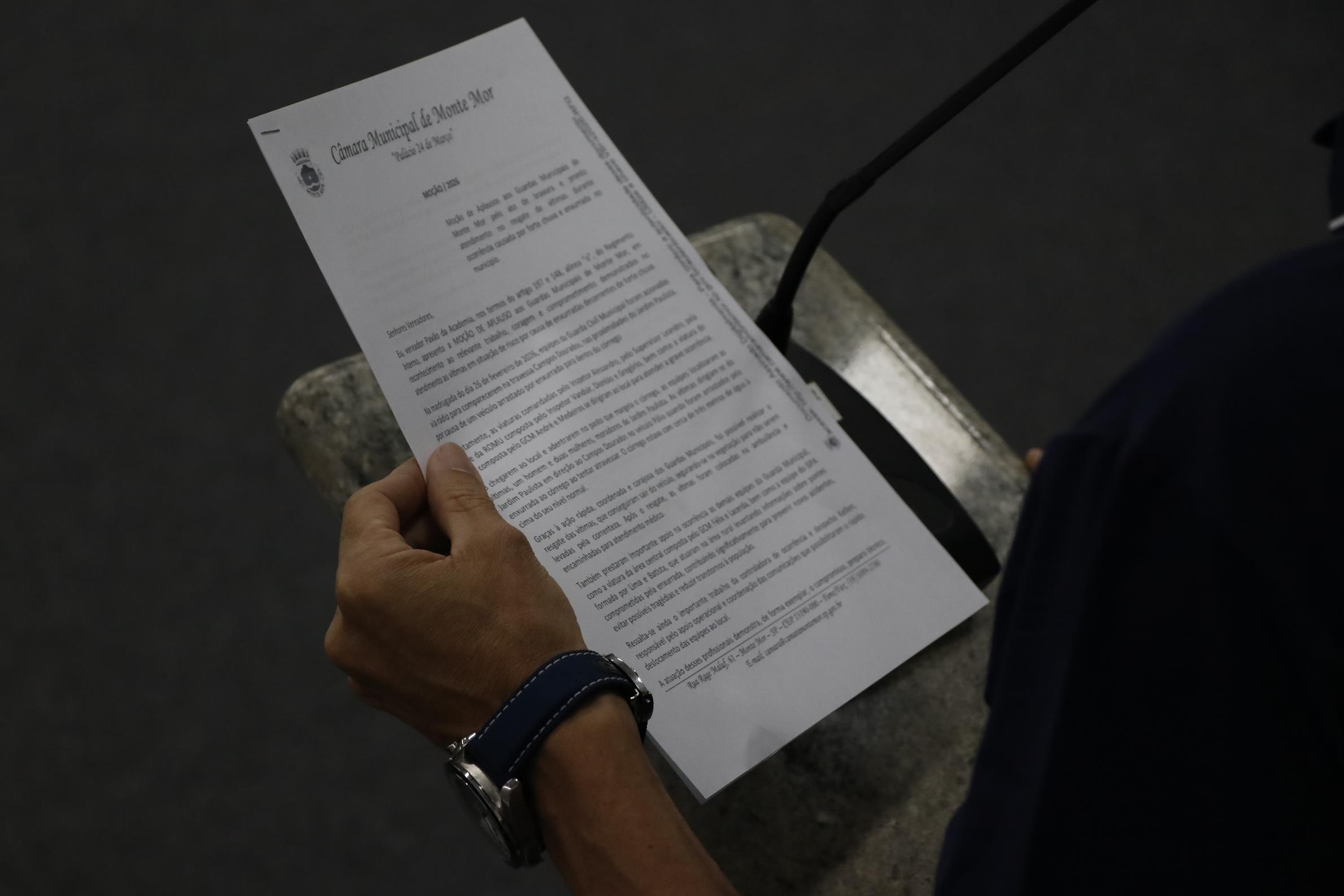 A honraria cita o “ato de bravura e [o] pronto atendimento no resgate” dos montemorenses, moradores do Jardim Paulista, durante “ocorrência causada por forte chuva e enxurrada”.