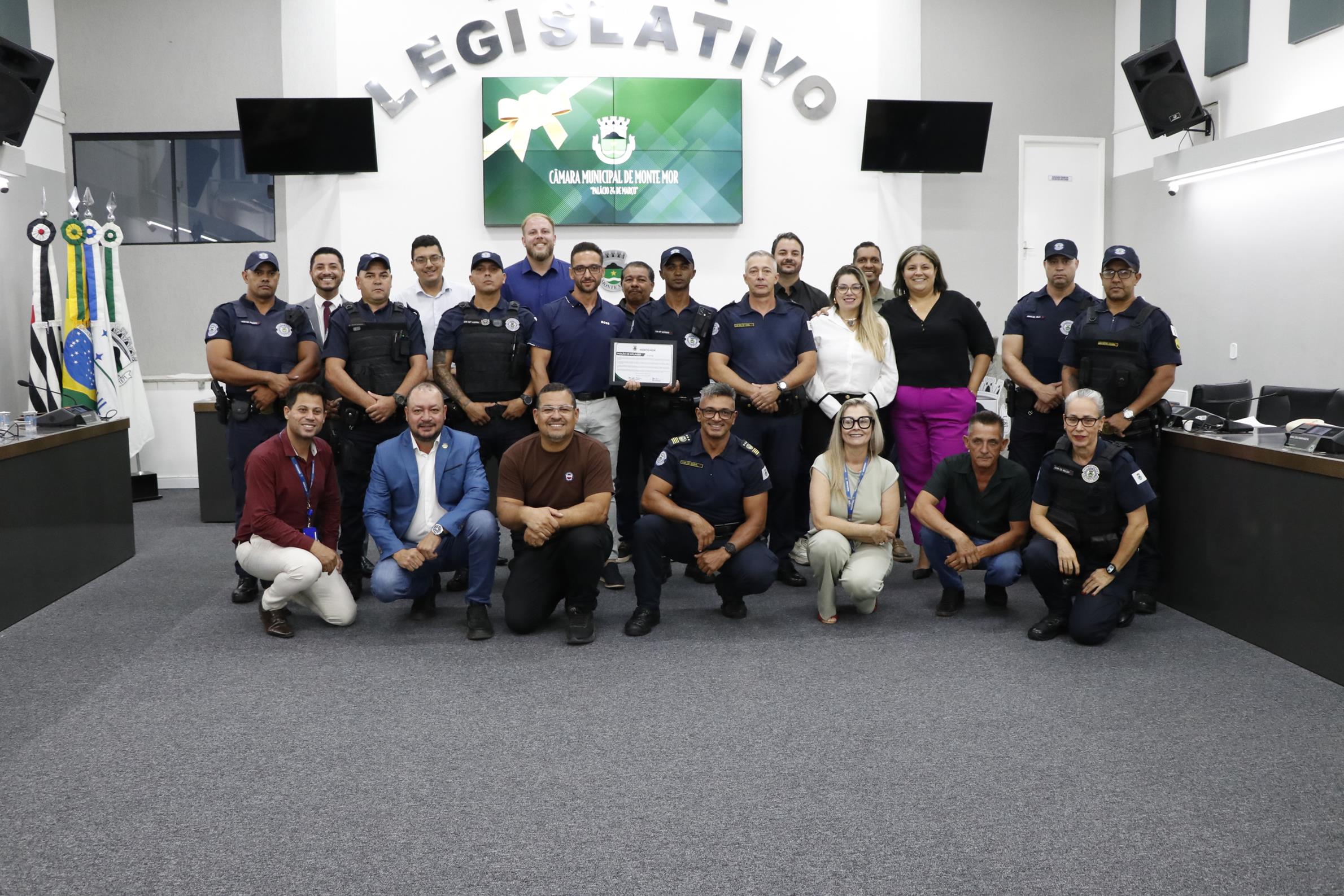 Vereadores e guardas civis municipais, após a sessão plenária da CâmaraOs guardas municipais que atenderam uma “grave ocorrência”, no dia 26 de fevereiro, foram homenageados pela Câmara, durante sessão ordinária realizada nesta segunda-feira (6).